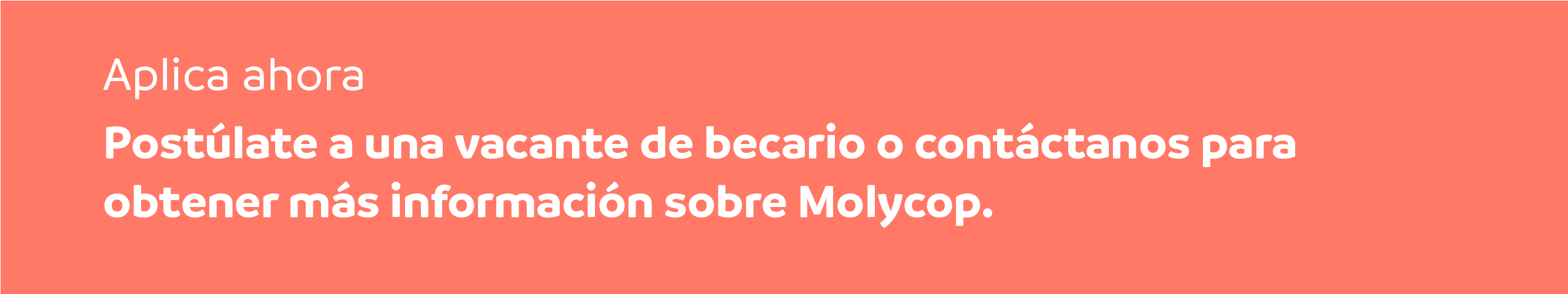 Para ser becario en Molycop necesitas ser estudiante universitario de ingeniería, logística, operaciones, negocios y carreras afín de los últimos semestres.
